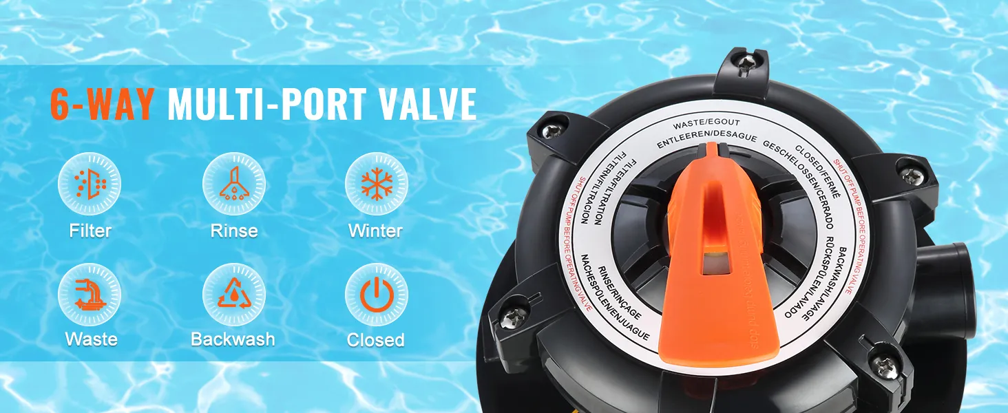 Multifunctioneel en slimme timing: de zandpomp heeft 6 verschillende functies, waaronder filter, spoeling, terugspoeling, afval, gesloten en wintermodus, zodat u uit verschillende opties kunt kiezen. Dankzij de intelligente 24-uurs dual-mode tijdcontrole (continue en enkele cyclusmodus) is de bediening eenvoudig en probleemloos.