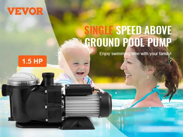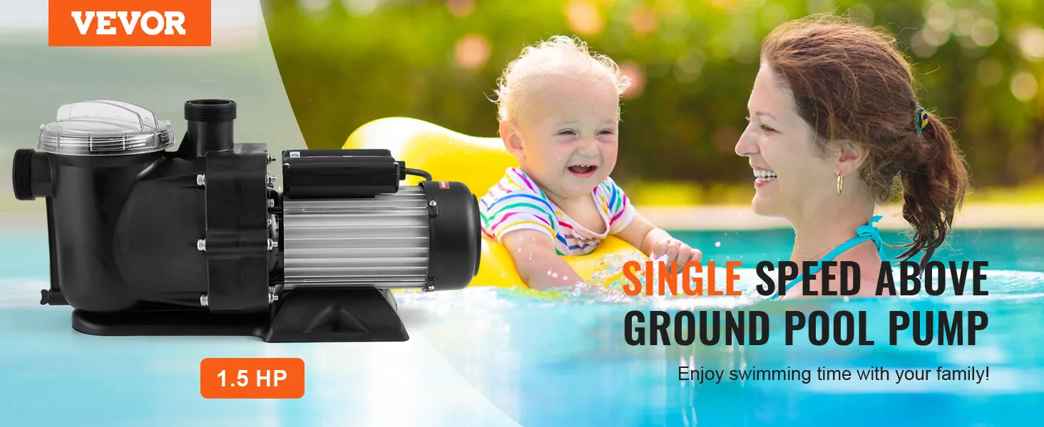 Maak kennis met onze bovengrondse zwembadpomp. Het beschikt over een koperdraadmotor van 1,5 pk, een maximaal debiet van 100 GPM en een opvoerhoogte tot 15 meter. Het is perfect voor bubbelbaden, spa's en zelfs irrigatiesystemen.