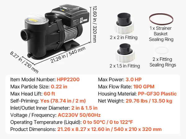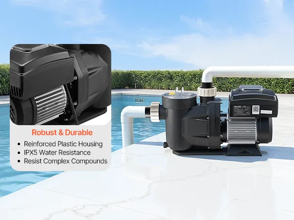 Premium & Durable Build: Equipped with a permanent magnet motor, this swimming pool pump runs cooler, lasts longer, and saves energy. Its reinforced plastic housing with IPX5 waterproof protection resists harsh pool conditions for long-term reliability