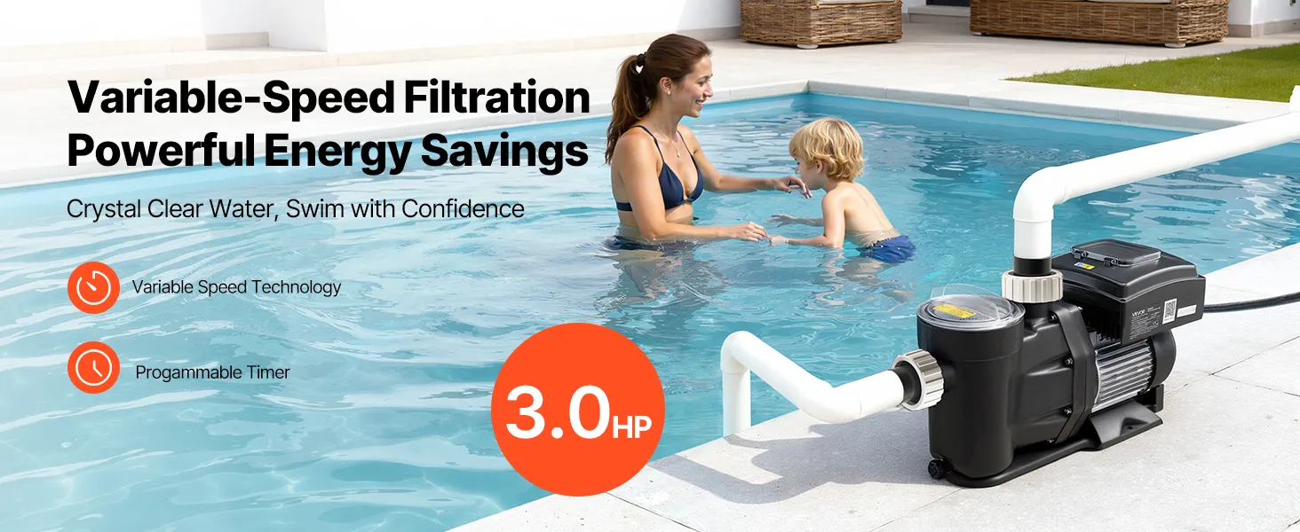 More Energy-Efficient: This variable speed pool pump adjusts speed based on your pool size and usage frequency, delivering significant energy savings compared to traditional single-speed pumps