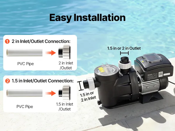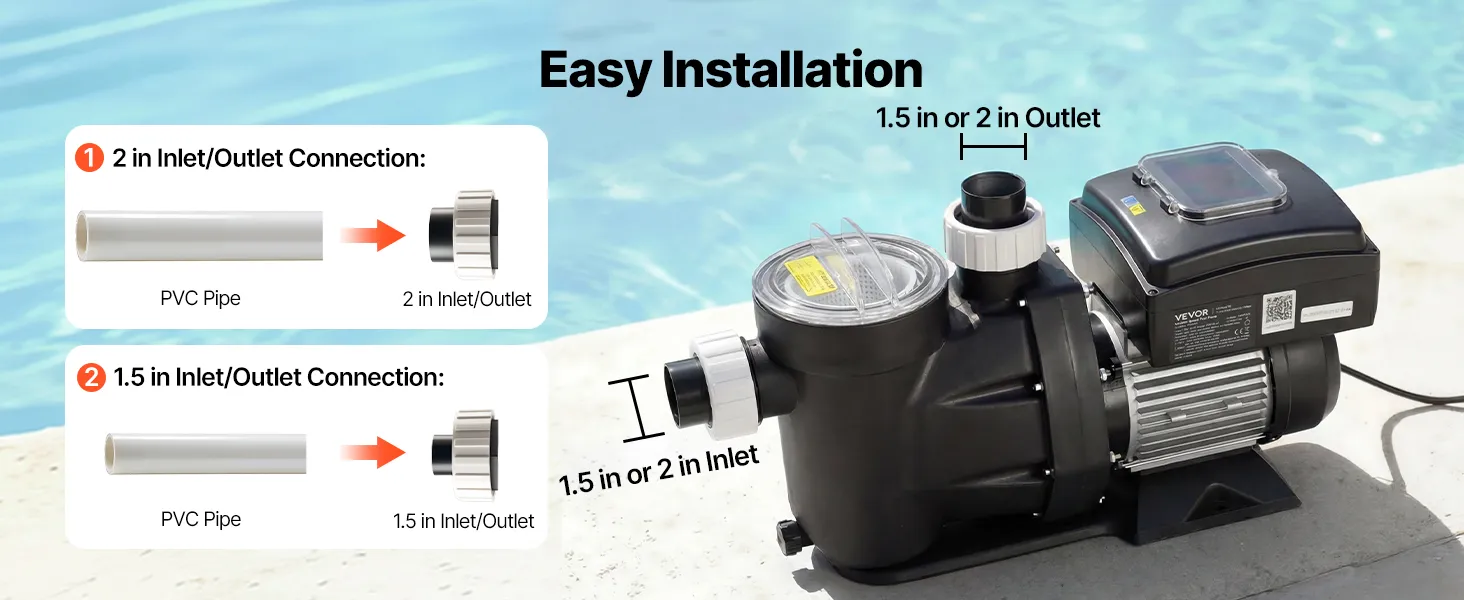 Installation Made Easy: This variable speed pool pump supports both PVC pipes and flexible PVC hose. With simple, step-by-step connections, it makes setup fast and beginner-friendly