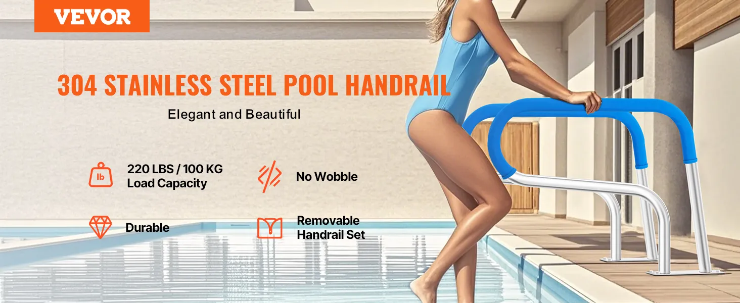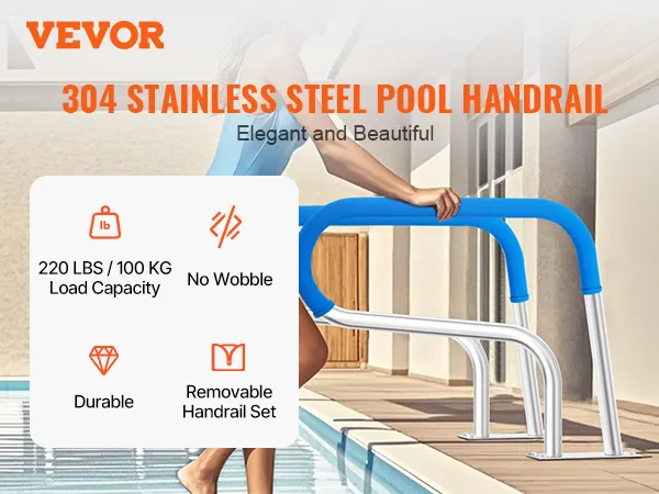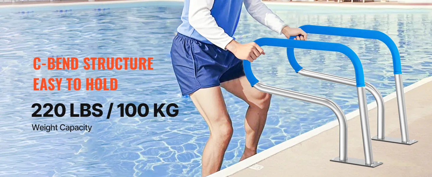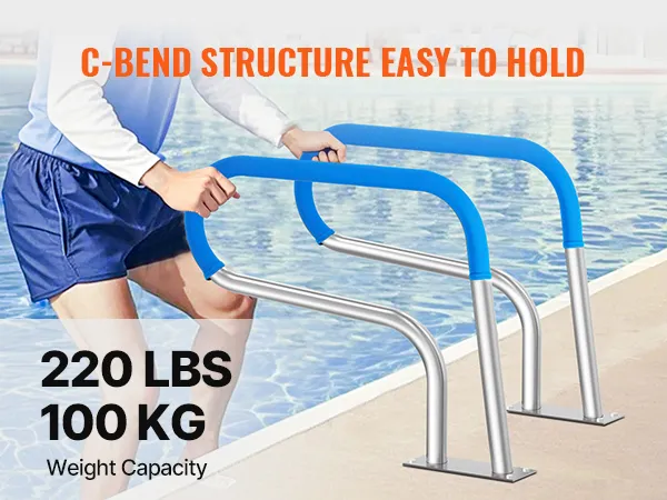 Supports Up to 220 lbs: With exceptional weight capacity, our pool safety rails provide secure support for both adults and children. The seamless one-piece design is sturdy and durable, with thickened pipe walls and base for added strength.