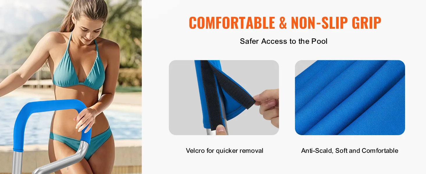 Expertly crafted stainless steel handrails ensure every step while boarding is solid and reliable. Seamless welding techniques prevent rust and corrosion, making them perfect for poolside safety.