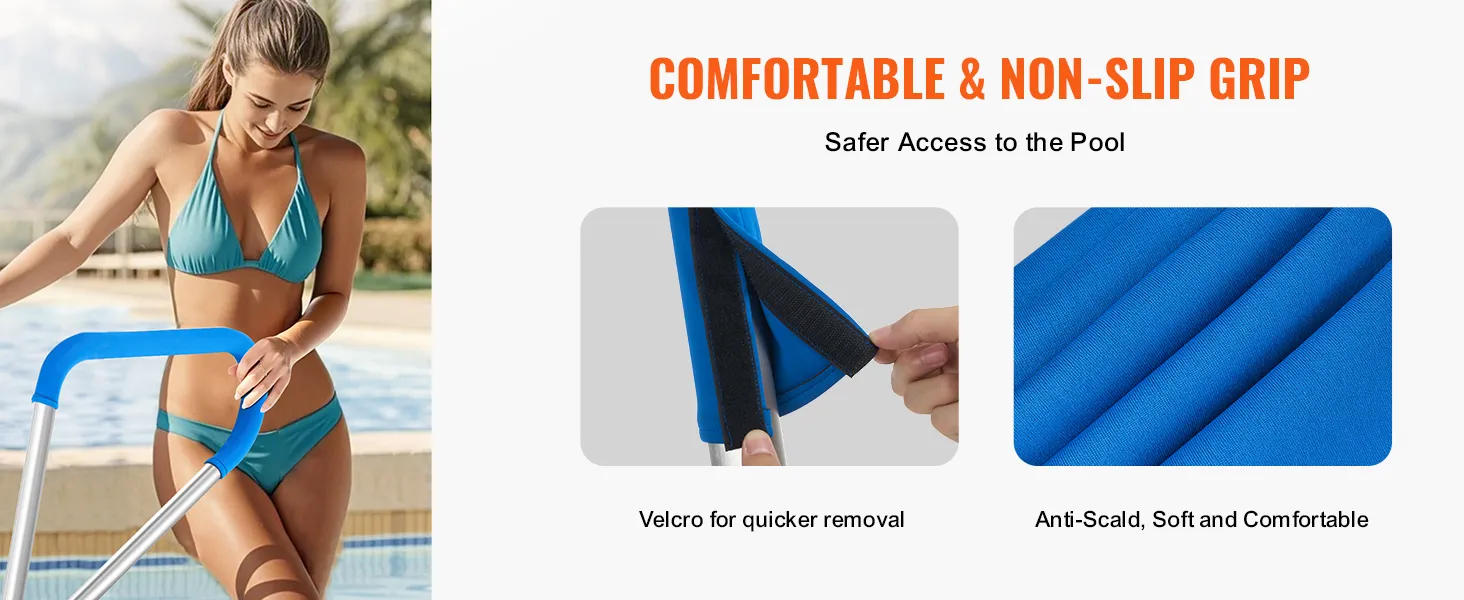 304 roestvrijstalen zwembadleuning: onze zwembadleuningen zijn gemaakt van duurzaam 304 roestvrij staal en zijn ontworpen om golfimpact te weerstaan. Ze zijn geanodiseerd om te beschermen tegen UV-straling, zijn bestand tegen vervorming en zijn voorzien van nauwkeurige lasnaden, waardoor ze perfect zijn voor buitenzwembaden.