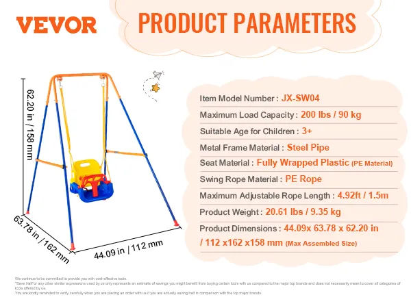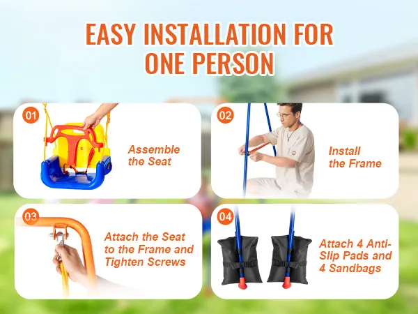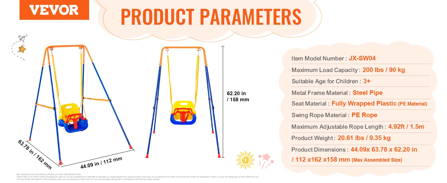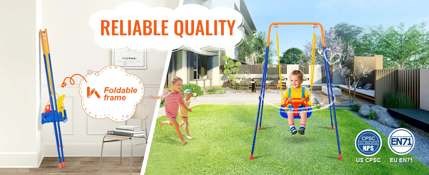 Easy to Install: The all-metal frame of this toddler swing set folds for convenient storage and is easy to assemble. Follow detailed instructions to assemble with your children for quality family time and to enhance their motor skills.
