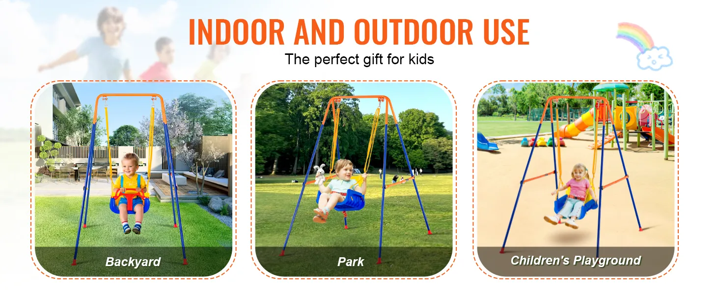 Our toddler swing set is suitable for various settings including backyard, park, kindergarten, and entertainment centers, encouraging children to spend more time outdoors and enjoy a joyful childhood.